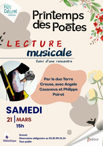 19h-19h30 – Lecture musicale pour adultes : « Là où l’humain se planque » par TERRE CREUSE (poétesse, interprète : Angèle Casanova / compositeur, interprète : Philippe Poirot)