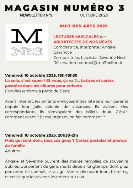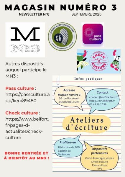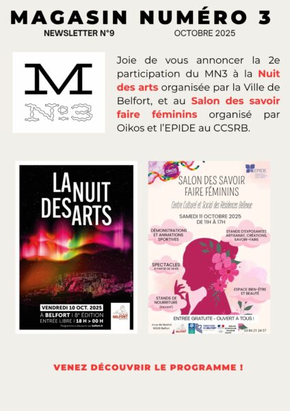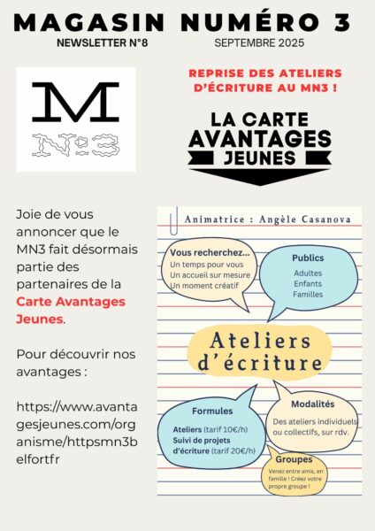 Vous souhaitez suivre l’actualité de l’atelier ? Inscrivez-vous à la newsletter en envoyant un message vide à cette adresse mail : newsletter-subscribe@mn3belfort.fr
